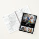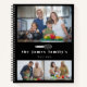 Libro de recetas familiar moderno personalizado con tres fotos y el nombre de tu familia bajo un lindo bigote de globo en blanco contra un fondo negro.