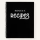 Personalizar el color de fondo negro sólido. Cambiar el color blanco de la tipografía "Recetas" texto gráfico digital del texto para su nombre. Moderno cuaderno de recetas minimalistas para ella.