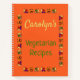Mantén tus recetas vegetarianas favoritas en este portátil práctico. Se personaliza con tu nombre y elección de palabras y está decorado con un borde de coloridas verduras del jardín. La parte trasera del cuaderno también está decorada. El fondo es rústico naranja.