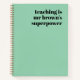 Un cuaderno minimalista para profesores con una tipografía retro vintage "la enseñanza es la superpotencia de [el nombre del profesor]" en negro sobre un fondo verde sabio. ¡El regalo perfecto para cualquier profesor!
