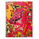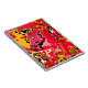 Vibrant, abstract shapes create a lively pattern filled with reds, pinks, yellows, and blacks, resembling a mosaic or stained glass effect. The overlapping forms give a sense of movement and complexity, inviting the eye to explore the intricate details.
