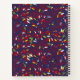 Vibrant modern botanical pattern featuring red, gold, and white leaves dancing across a deep navy background.