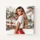 Description: A radiant glam girl portrait with long blonde waves, red leather pants, and a tropical city backdrop — bold, stylish, and editorial.
