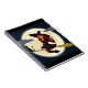 REDHEADED HALLOWEB WITCH VOLANDO EN BROOMSTICK CON CAT Y LUNA COMPLETA