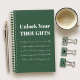 Welcome the new year with a fresh start through writing. This green Notebook, titled “Unlock Your Thoughts”, is designed to inspire creativity, reflection, and self-expression. The front cover offers simple prompts on what to write, while the back highlights the powerful benefits of journaling. A meaningful and thoughtful gift to encourage beginners—or anyone you care about—to start the year with a beautiful new habit.