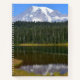 Portátil de tamaño estándar, enlazado en espiral, con cubierta frontal y posterior, con una imagen panorámica de paisaje fotográfica de los nevados del Monte Rainier, reflejada en una tranquila superficie lacustre. Perfecto para guardar notas para la oficina o la escuela. Seleccione el estilo de su bloc de notas y el color del cable.