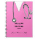Arte creativo de cuaderno de enfermera con matorrales rosados de hospital, estetoscopio y navaja suiza. Para personalizar, edite el texto para agregar nombre y año.