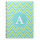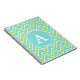 Este elegante cuaderno está decorado con un patrón de chevron limón y turquesa. Personalice este bloc de notas monogramado cambiando la letra monograma. Este cuaderno es genial para la escuela, viajes, negocios, etc... El diseño es de arte original.