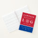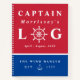 Registro del capitán en rojo y azul con una rueda del barco que sustituye a la O en Log, y un ancla blanca. Añade tu nombre, el nombre del barco y la fecha.