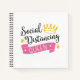 ¿Has estado distanciando socialmente desde antes de que fuera genial? Presenta tu estado introvertido y haz tu parte por la salud pública con este gracioso cuaderno basado en tipografía que presenta la cita de la "reina de distanciamiento social" con letras coloridas con un ilustracion de la corona y un banner con cinta adhesiva al estilo de un concurso.