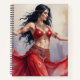 Una acuarela que captura la esencia de la danza del vientre. La bailarina resplandece con un lujoso traje rojo que refleja su pasión y realeza.