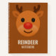 This adorable Reindeer College Ruled Notebook features a cute Christmas reindeer face with a bright red nose on a warm festive background.