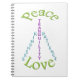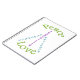 Las palabras Paz, Amor, Tranquilidad, Amabilidad y Paciencia, impresas en un cuaderno.