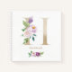 Portátil monograma floral H con letra Feminine y bonito moderna. Este diseño presenta flores violetas color agua y acentos verdes con una tipografía de Relieve metalizado de oro falso sobre fondo blanco. Fácil personalización añadiendo un nombre o una frase corta. Este cuaderno monograma H de letra floral será perfecto como regalo personalizado.
