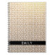 Escriba su nombre en letras mayúsculas, o también puede utilizar un estilo de fuente y una opción de espaciado de fuentes diferentes. Crea tu propia foto personalizada de Relieve metalizado metálico de color amarillo dorado y diseño de patrones de clave griega de estilo clásico blanco. El Relieve metalizado metálico es un efecto fotográfico impreso. Portátil de espiral personalizado para el viaje de regreso a la escuela de un estudiante universitario. Transferir el diseño a otro bloc de notas o planificador de estilo.