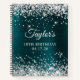 Cree su propio diseño de fiesta de 18 años en un bloc de notas en blanco. Purpurina de plata brillante de Girly en el borde superior e inferior, sobre un falso Relieve metalizado oscuro de estilo metalizado color turquesa oscuro y cepillado. Personalizar los estilos de letra para crear tu propio libro de invitados su celebración especial. Una caligrafía clásica y elegante, acompañada de un tipo de letra serif con todos los mayúsculas.