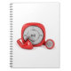 Cuaderno Reproductor Mp3 rojo y auriculares atados con