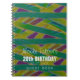 Fondo abstracto con colores acuáticos, azules, violetas y verdes + letras blancas para este cuaderno en espiral (libro de invitados de 20 años). Todo es personalizable.