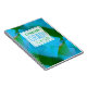 Fondo abstracto con cuadrados de color superpuestos (colores: azul turquesa y verde) y letras de personalizable divertidas en etiquetas blancas semitransparentes. Puede cambiar fácilmente el texto (fuente, color, tamaño y posición) haciendo clic en el botón personalizar. Libro de invitados de graduación.