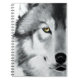 Retrato de lobo hecho todo en blanco y negro, pero los ojos son de color.