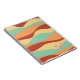 Este bloc de notas presenta un diseño de estilo de los años 70 con una impresionante paleta de colores. Los colores predominantes son la terracota, el amarillo mantequilla, el naranja claro y el verde menta. El diseño muestra rayas onduladas abstractas que agregan un movimiento táctil a la estética general. Estas rayas son un guiño a las tendencias artísticas de los años 70. Para que este bloc de notas sea verdaderamente único, también hay la opción de incluir texto personalizado para su nombre.