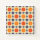 Retro 70s Scandinavian minimalist design featuring orange geometric flowers with petals on a navy blue background. Great for accessories, apparel, bags, home decor, living decor, kitchen accessories, and stationery.