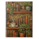 A cozy retro-inspired design featuring a charming bookshelf filled with vintage books, delicate botanical accents, and a comforting cup of tea or coffee.