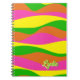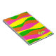 Este bloc de notas presenta un diseño de estilo de los años 70 con una impresionante paleta de colores. Los colores dominantes son rosa claro, amarillo, verde y naranja. El diseño muestra rayas onduladas abstractas que agregan un movimiento táctil a la estética general. Estas rayas son un guiño a las tendencias artísticas de los años 70. Para hacer que este bloc de notas sea verdaderamente único, también hay la opción de personalizar con su nombre.