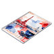 El diseño presenta una acuarela artística representativa de una escena parisina por excelencia. Dominando el horizonte se encuentra la Torre Eiffel, pintada en un rico tono sepia que capta su estructura icónica con el telón de fondo de edificios urbanos silenciosos. Frente a este panorama urbano se encuentra una estilizada taza azul de café au lait, encaramada elegantemente sobre un platillo. La copa, con detalles sutiles, sugiere un momento de relajación y de indulgencia parisina. Toda la escena está acentuada con oscilaciones audaces de rojo y azul, con espacios blancos que proporcionan equilibrio y contraste, dando una calidad abstracta y de ensueño a la composición. La fluidez de las acuarelas da la impresión de una escena capturada en la pausa serena de una pausa matutina, invitando al espectador a apreciar el encanto eterno de París.