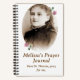 Este diario de oraciones personalizado es ideal para cualquiera que desee guardar sus pensamientos y oraciones en un diario. El diseño frontal incluye una hermosa foto ovalada de Santa Teresa la Flor Pequeña como chica joven. La imagen de dos rosas aparece como marco. El mensaje de personalizable se muestra debajo de la imagen. El reverso muestra una plegaria a San Terés con imágenes de rosas. El fondo es marrón.