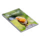 Un bonito Robin de verano encaramado en la parte superior de una valla. Si lo desea, puede personalizar o eliminar el texto "Mi bloc de notas".