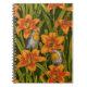Cuaderno Robins y flores de lirio, naranja y verde oscuro