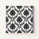 A vintage style decorative damask surface pattern influenced by rococo classical design in black detail on a white background.