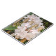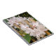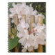 Un cuaderno de tamaño personal, enlazado en espiral para notas y reportajes que incluye una foto de portada de flores blancas de rododendros y esgrima de bambú. ¡Un bonito diseño floral!