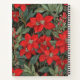Un patrón dramático y elegante de flores rojas sobre hojas verdes que destacan sobre un fondo oscuro, creando un contraste impactante.