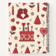 This doodle pattern features a variety of hand-drawn elements in a warm palette of reds and soft pinks, including: