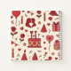 This doodle pattern features a variety of hand-drawn elements in a warm palette of reds and soft pinks, including: