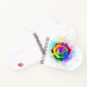 Rosa grande y floreciente con pétalos de arco iris sobre fondo blanco, pintado con salpicaduras de pintura colorida y brillante. 3.ª