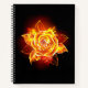 Rosa en llamas del fuego y la llama sobre fondo negro.