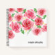 El bloc de notas floral de moda cuenta con una cascada de rosas de acuarela rosa y roja con su nombre o elección de personalización en letras manuscritas.