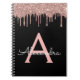 Rosa dorado - Cuaderno en espiral de monograma y letra inicial con brillo rosa y negro. Este es el regalo perfecto para cumpleaños de 16 años, boda, despedida de soltera, aniversario, baby shower o fiesta de soltera para alguien que ama el lujo y los estilos elegantes.