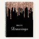 Crea tu propio y elegante libro de texto personalizado. Faux brillantes rosas de oro purpurinas goteo combinado con un fondo negro. Puede cambiar el estilo de letra, el tamaño o elegir su color favorito. Este cuaderno especial en blanco para sus bocetos y dibujos hace un gran regalo de cumpleaños. Un personalizado de boceto en blanco para creativos.