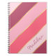 Cuaderno divertido para mujeres o niñas. Con un hermoso patrón contemporáneo de rayas rosadas, rosa oscuro y dorado falso. Con espacio para personalizar con el nombre, monograma o iniciales de su elección. Diseño moderno, caprichoso y ornamentado para la fashionista elegante y artística o la diva de la moda, la que sigue las últimas tendencias o simplemente ama el estilo de arte de rayas retro.