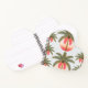 Das Bild zeigt ein stilisiertes Muster aus Palmen, deren Blätter in leuchtendem Pink und Grün gehalten sind. Im Hintergrund strahlt eine abgestufte, warme Sonne in Orange- und Rosatönen, die eine entspannte, tropische Atmosphäre vermittelt. Die klare Linienführung und die sanften Farben erwecken ein Gefühl von Ruhe und sommerlicher Leichtigkeit.