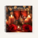 Un cuaderno romántico con una pintura de dos vasos de rojo con rosas y luz de velas. Hermoso para el alma romántica, un boda, un amante del vino o como regalo El día de San Valentín.
