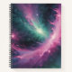 Una galaxia vibrante de tonos rosa y verde que flota en el espacio, salpicada de estrellas brillantes.