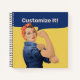 Rosie the Riveter. Color del fondo y del cartel personalizado. Texto personalizado en ambos lados.