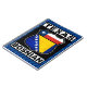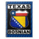 Diseño clásico de señas de ruta de EE.UU., con el texto TEXAS BOSNIAN, y las banderas del estado de Texas y Bosnia Herzegovina.