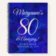 Elegante portátil Royal Blue 80 y increíble fiesta de cumpleaños Personaliza este elegante libro de invitados de cumpleaños Royal Blue con el nombre de la persona que celebra un día muy especial en su vida. Un cumpleaños número 80 es un hito especial para celebrar. Marque la ocasión creando un fiesta elegante y personalizando un libro de invitados para que los invitados firmen en la fiesta de cumpleaños cuando lleguen. Un libro de invitados es el libro perfecto de mantenimiento y memoria. ¡Planifique a su fiesta con más suministros de nuestra tienda para fiestas de cumpleaños! ¡A tus amigos o a tu familia les encantará una elegante fiesta de cumpleaños con la temática Royal Blue!