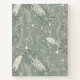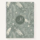 Este bloc de notas de bonito en espiral floral presenta un patrón de plumas, flores y paisajes dibujados a mano en crema sobre un fondo de sabio polvoriento con acentos de sabio más oscuros -personalizados con su monograma- de katz_d_zynes
